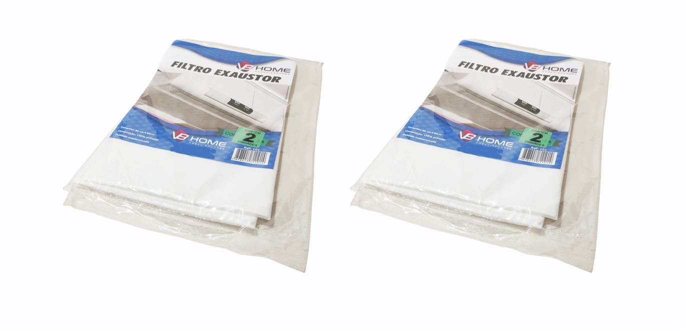 Filtro de manta para coifas, depuradores e purificadores de ar, compatível com todas as marcas. Tamanho único de 80cm x 60cm, feito de 100% poliéster. Kit com 4 unidades, recomenda-se trocar a cada 2 meses. Pedido até às 12:00 enviado no mesmo dia útil.