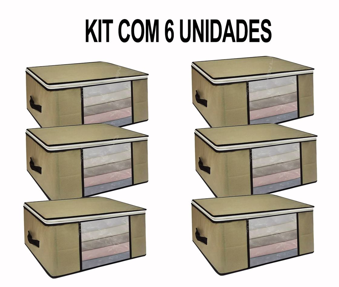 3. Organizador Multiuso com Zíper Marfim Médio 60x45x30cm Kit com 6un.